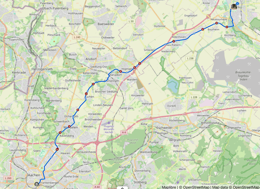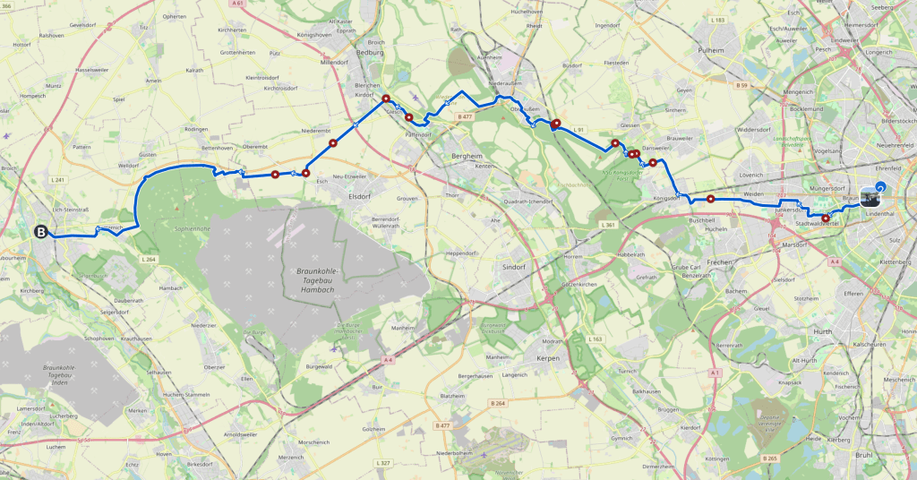 An Jülich wäre ich fast vorbei gefahren, den während Komoot konsequent auf die Hauptstraße im Ort ansteuert, führt bikerouter mit der gleichen Konsequenz drumherum. Jedenfalls mit meinen Einstellungen: Gravel „Quaelnix“ wenig Steigung, wenig Verkehr. Insgesamt war es nicht weiter als meine frühere Tour.