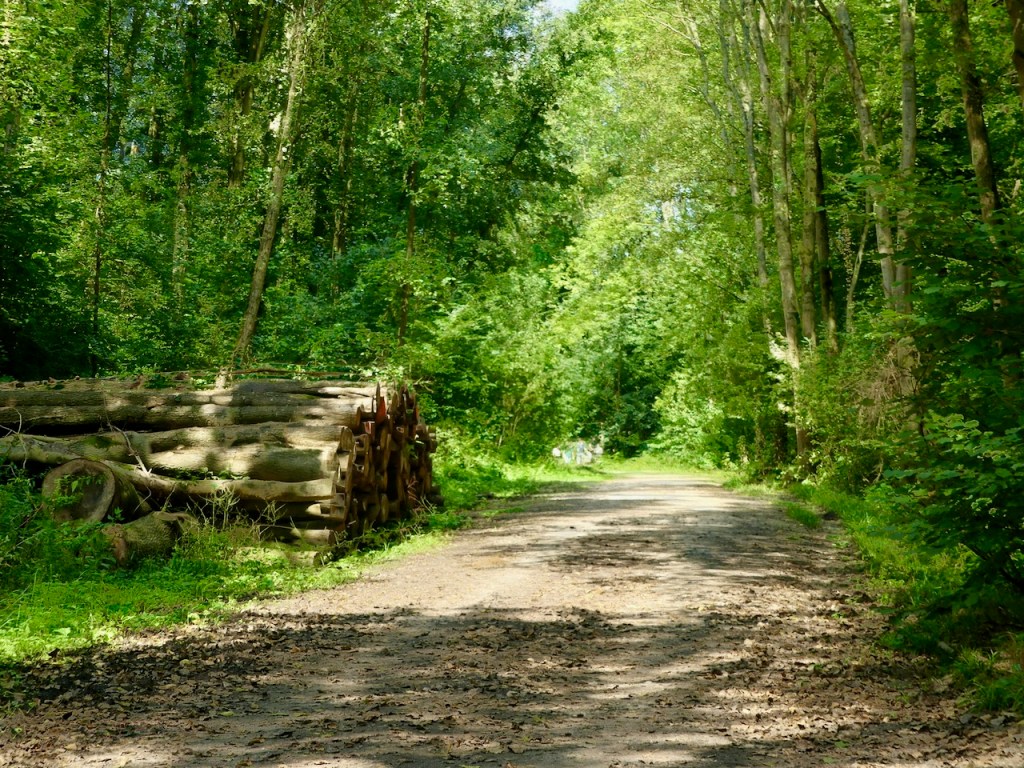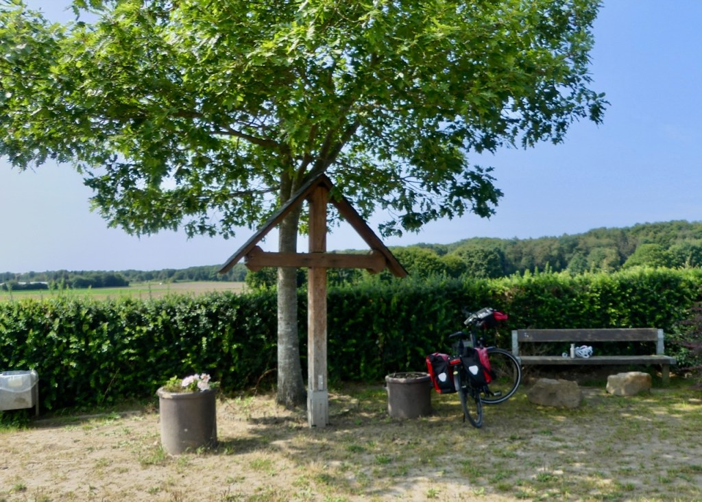 Der Bikerouter führt über ruhige Nebenstraßen durch Junkerdorf und über teils bekannte Wege auf’s Land. Ich erkenne drei Bäume wieder, unter denen ich mal im Regen gestanden habe, und auch an diesem Pausenplatz habe ich wohl schon einmal halt gemacht.