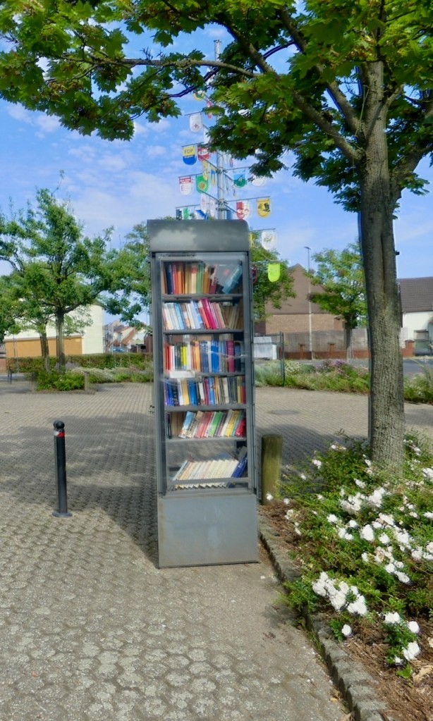 Hier hat jedes kleine Dorf einen eigenen Bücherschrank. RWE tut alles, um sich bei den Bürgern beliebt zu machen, wohl wissend, dass sie deren Heimatdörfer abgebaggert hat.