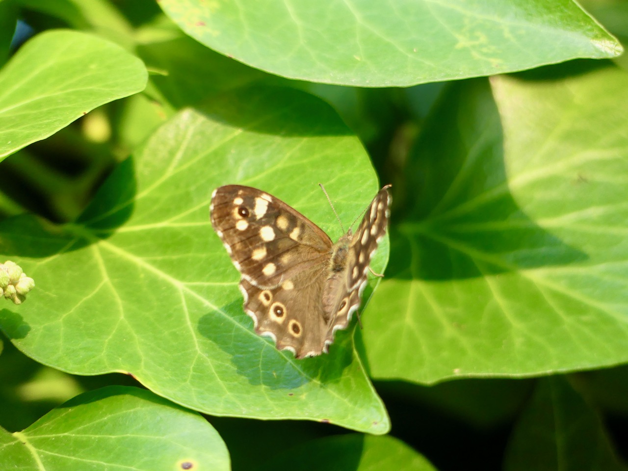 Damals, als es Abends noch lange hell war und man draußen sitzen konnte, hat es mich besucht und war geduldiger als ein anderer Falter, der gleich davon geflogen ist. Seine Flügelspannweite kann 32 mm bis 45 mm betragen. Das Wald-Brettspiel bevorzugt lichte Wälder und legt seine Eier an Gräsern ab. Dabei ist es nicht wählerisch. Mein Garten wirkt im hinteren Teil schon wie eine Waldlichtung und Gräser gibt es genug. Brombeeren auch.