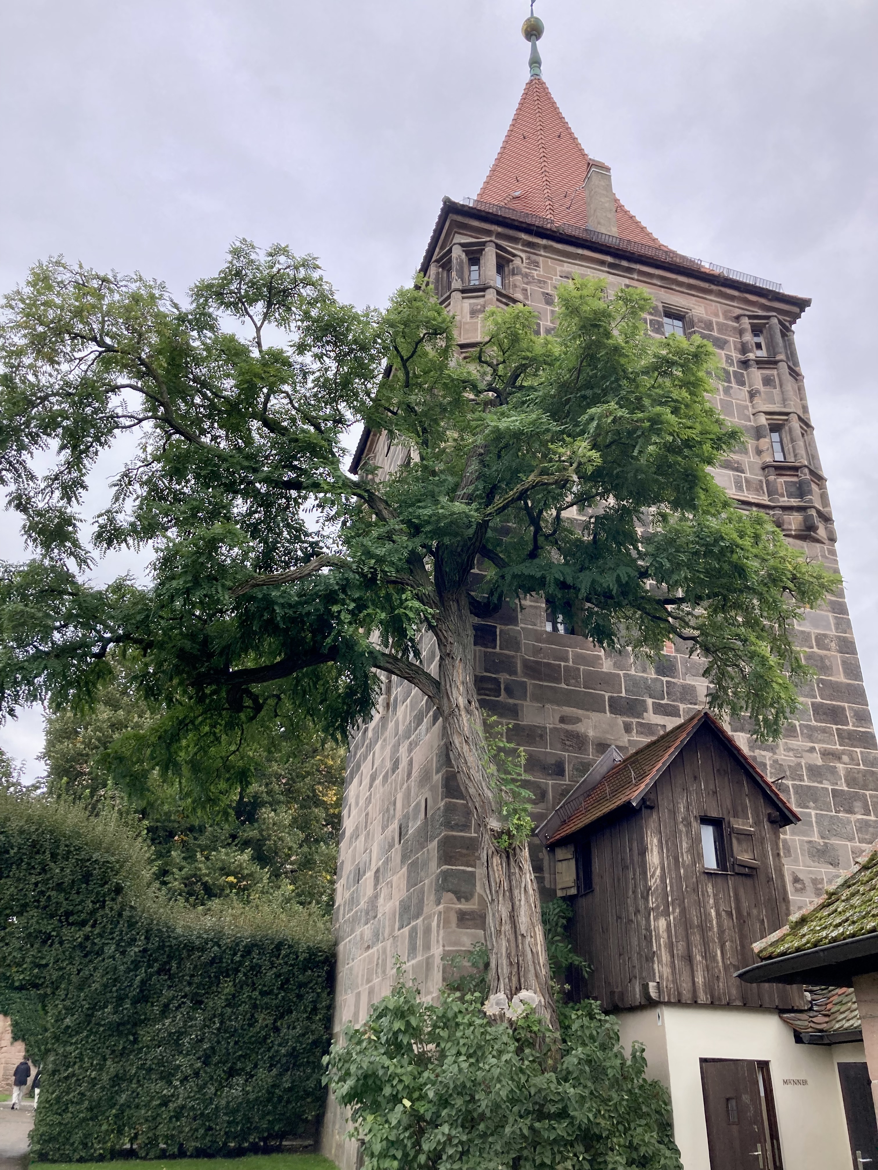 Doch schon am nächsten Stadttor konnte ich rechts durch ein schmales Törchen in den Bürgermeistergarten schlüpfen. Durch den Park entlang der Stadtbefestigung kam ich auf der schiefen Ebene ganz bequem doch noch zur Burg.