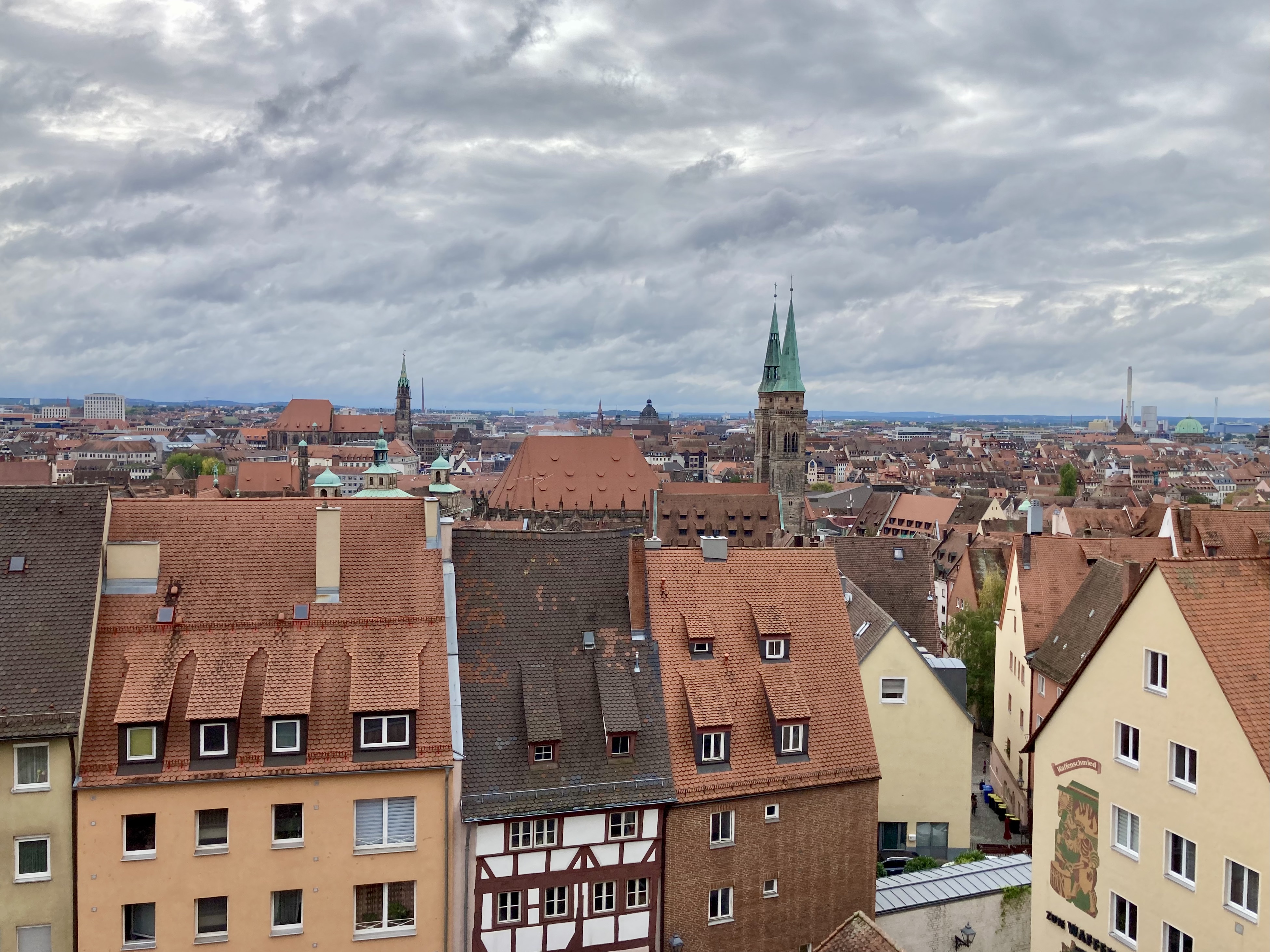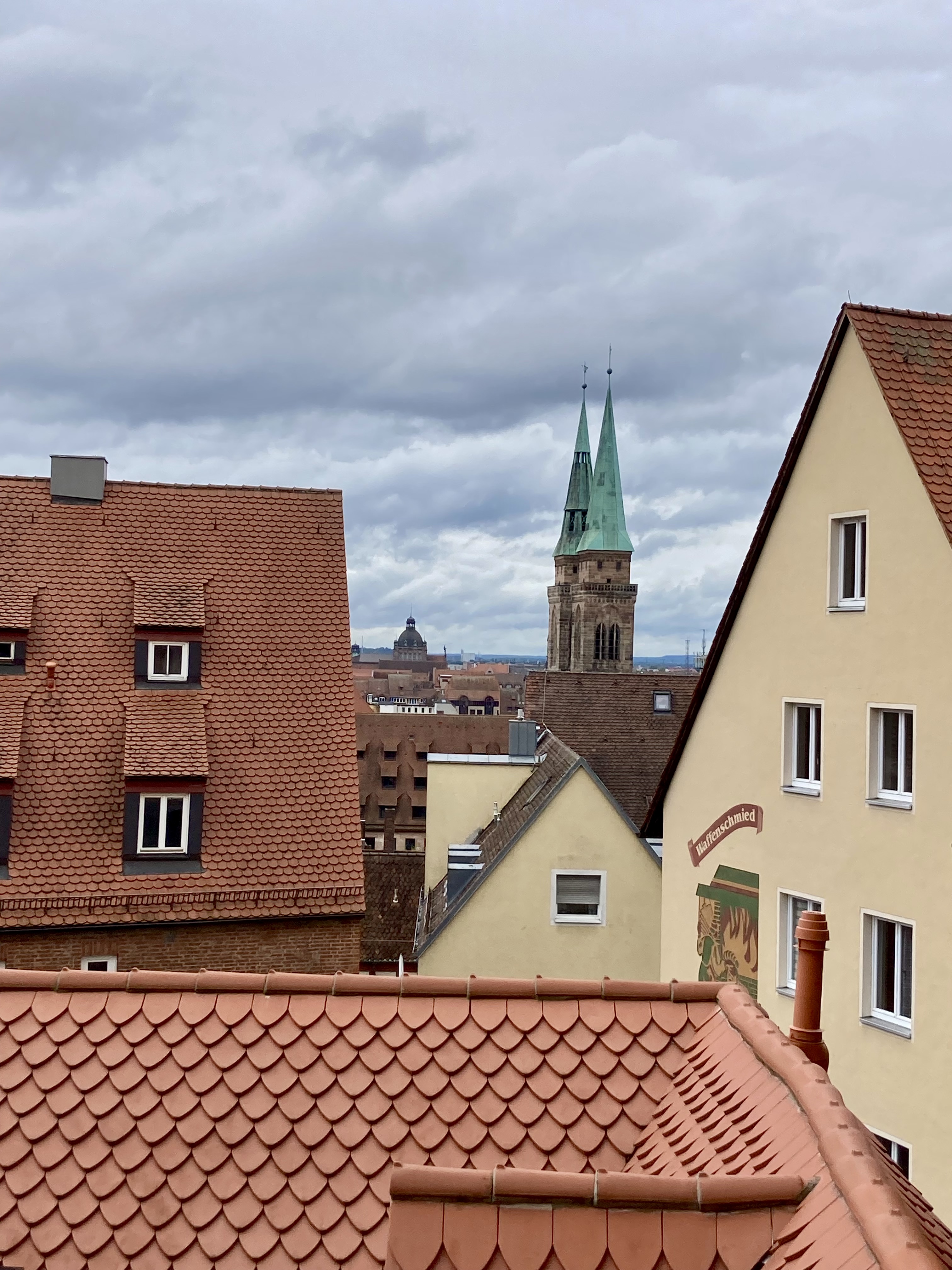 Früh ging es an der Lorenzkirche vorbei zum gemeinsamen Frühstück. Während die meisten danach schon nach Hause fuhren, hatte ich noch etwas Zeit, um das Germanische Nationalmuseum zu besuchen. Hier steht auch ein Welterbe: Der Behaim Globus ist der älteste Globus, noch ohne Amerika und deswegen zu klein im Durchmesser. Das Museum ist riesig. Unmöglich alles an einem Nachmittag anzuschauen. Ich beschränkte mich auf eine Sonderausstellung, streifte durch die verschiedenen Räume und nahm noch an einer Führung Teil. Dann hatte ich genug.