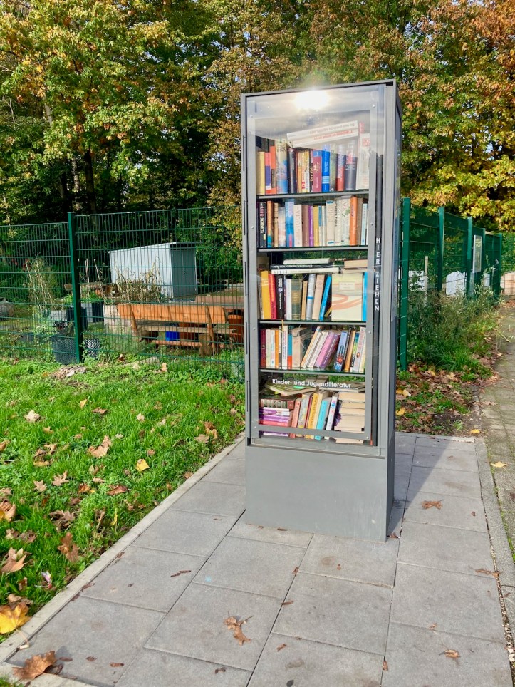 Ich hatte aus Nürnberg eine fette Erkältung mitgebracht, die erste seit 2020. Währenddessen war mein Rad 10 Tage in der Werkstatt, und ich habe angefangen, in Zusammenarbeit mit W. die Kölner + Umland Bookcrossing-Zonen – Orte an denen mal ein oder mehrere Bücher freigelassen wurden – „aufzuräumen“. Da hatte sich so einiges angesammelt an Zonen, die es nicht mehr gibt, doppelte Zonen, falsch benannte Zonen, alles muss raus. Schränke sollen ein Foto bekommen. Eigentlich ging es darum, eine unklare Situation in Bergisch Gladbach zu klären. Steht da ein Bücherschrank oder zwei dicht beieinander?