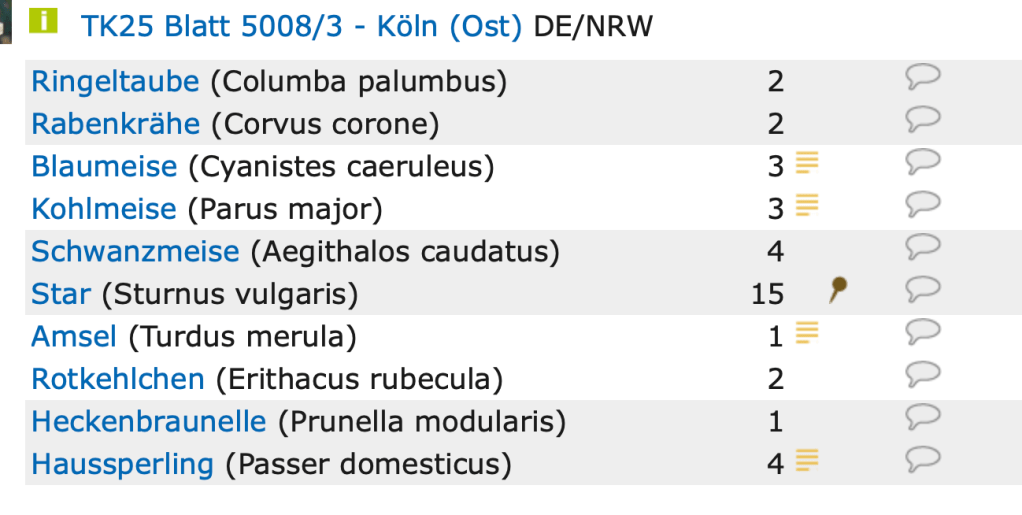 Tatsächlich haben es die Stare und die Schwanzmeisen rausgerissen, die gleich am Anfang der Zählaktion mal durch’s Blickfeld wischten. Und wie immer: Wenn einer frisst wollen es artübergreifend alle. Nach einer Viertelstunde war der Spuk aber auch schon vorbei, und ich konnte 45 Minuten lang vereinzelte Meisen zählen.