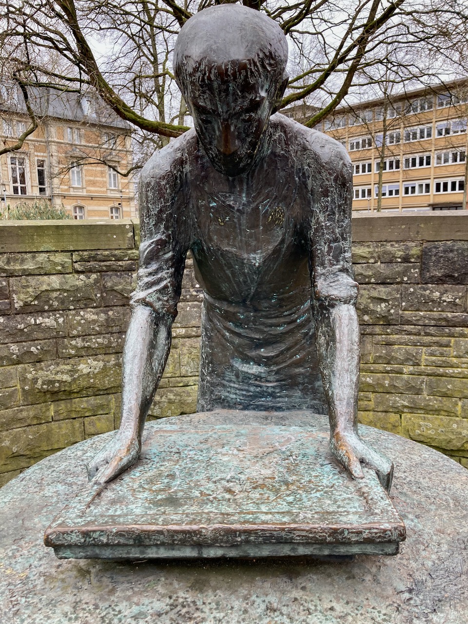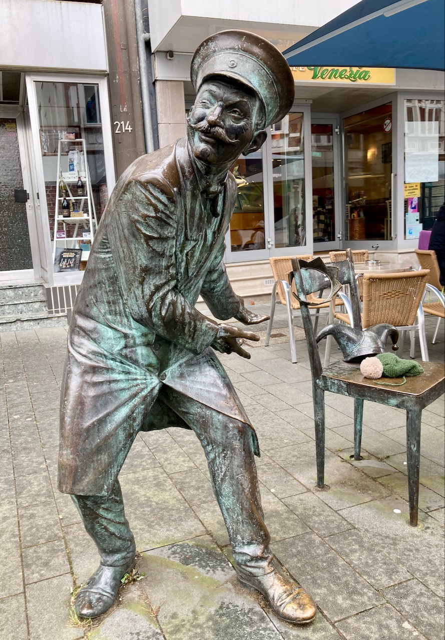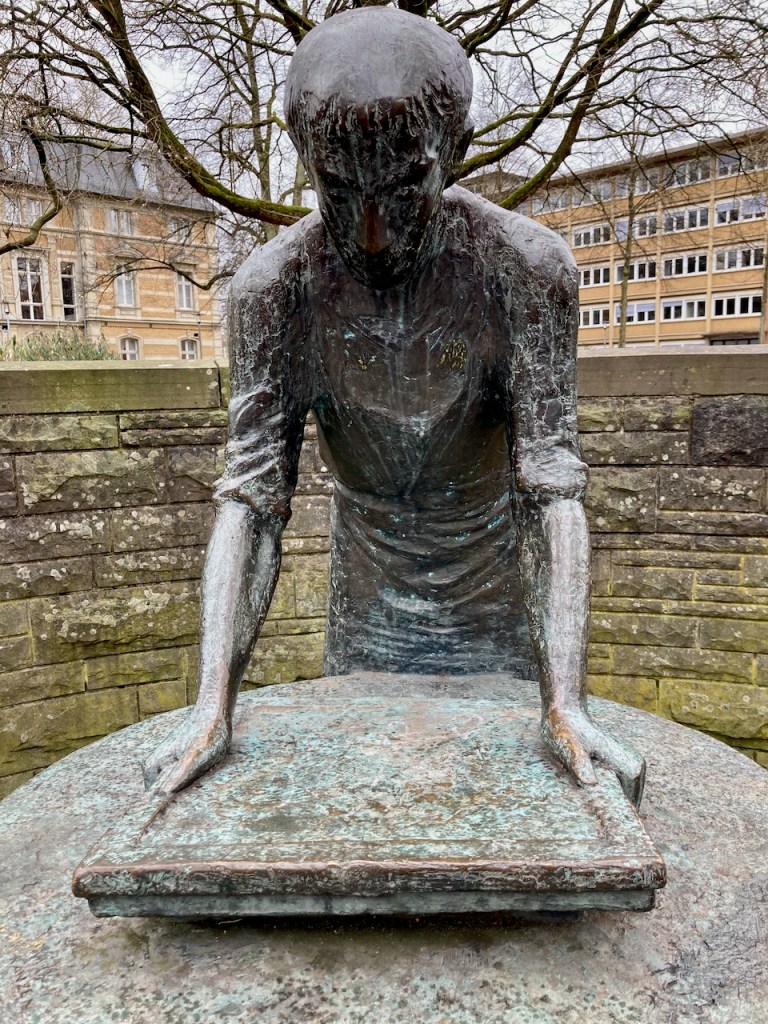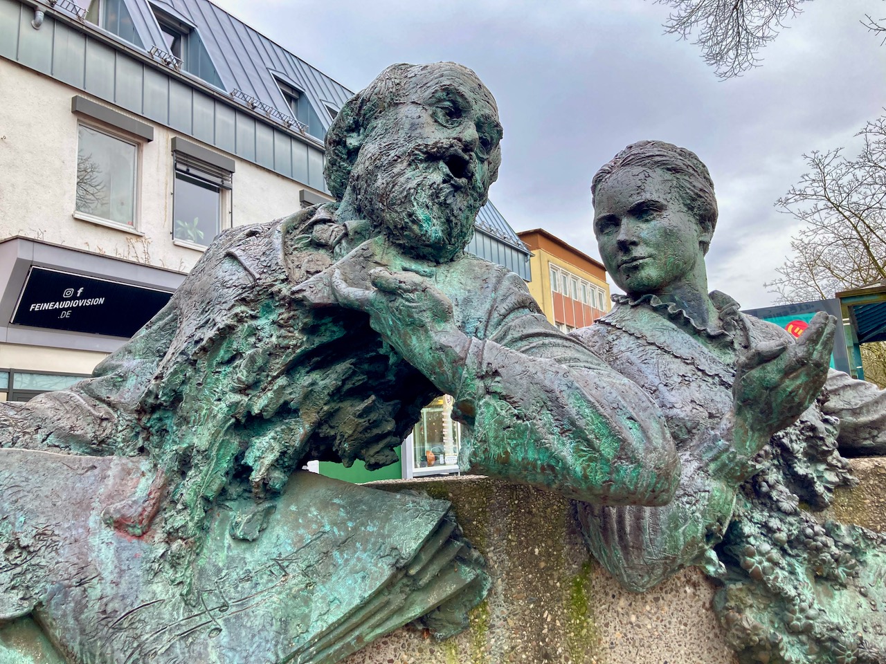Den Hexe Köbes hatte ich ja schon auf der Radtour im Oktober kennen gelernt. von hier geht es zurück über den Marktplatz, am Papierbrunnen vorbei. Die Tour endet am Heimatdenkmal, wo neben Maria Zanders und Max Bruch auch die für die Kultur in Bergisch Gladbach bedeutsamen Persönlichkeiten Vinzenz von Zuccalmaglio, Johann Lindlar und Ferdinand Schmitz dargestellt sind.