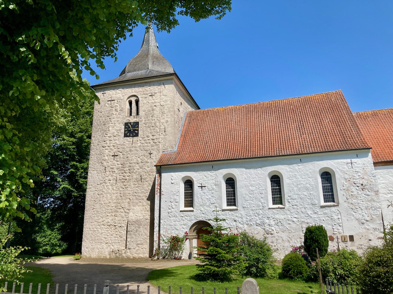 Die evangelisch-lutherische St.-Petri-Kirche in Bosau am Südufer des Großen Plöner Sees ist eine romanische Feldsteinkirche aus dem 12. Jahrhundert. Sie geht auf eine Gründung Bischof Vicelins zurück. Leider war gerade Messe. Deswegen verzichtete ich auf eine Besichtigung von innen und schaute stattdessen den Friedhof an.