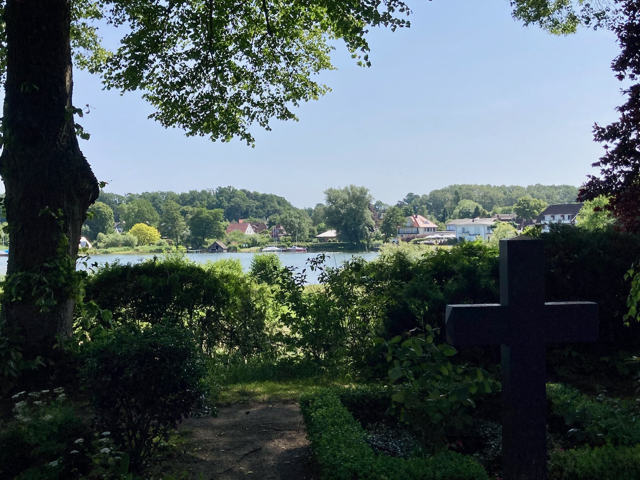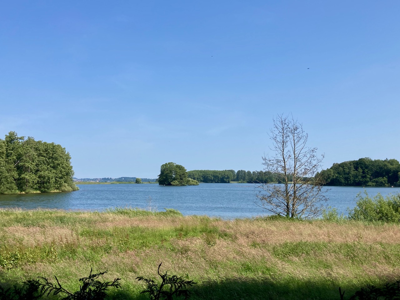 In Winterklamotten habe ich Köln verlassen. Beim Biotom war es schon etwas angenehmer, und in Plön strahlte schließlich die Sonne vom Himmel. Die Freunde in Köln stöhnten über eine Hitzewarnung – zur Abkühlung schickte ich ihnen dieses Foto vom See.