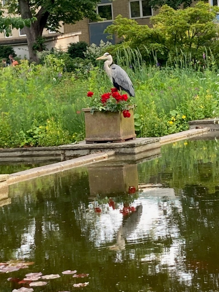 Wir sind dann noch zum Planten un Blomen gegangen, ein Eis essen. Anschließend hatte die Gastgeberin noch einen Termin, und ich habe mich entschieden, im Park zu verweilen. Ich fand ein ruhiges Plätzchen mit zwei Enten, sechs Erpeln und einem Reiher.