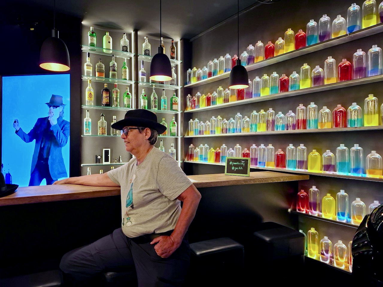 In der Bar durfte fotografiert werden, und wir mussten vorgezeichnete Likörelle auf dem Tablet ausmalen. Ich hätte ja lieber ihn gemalt.