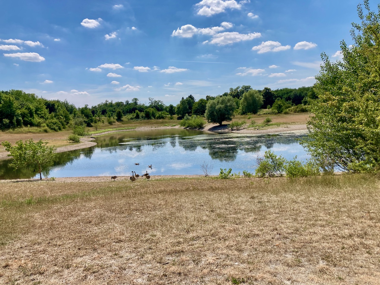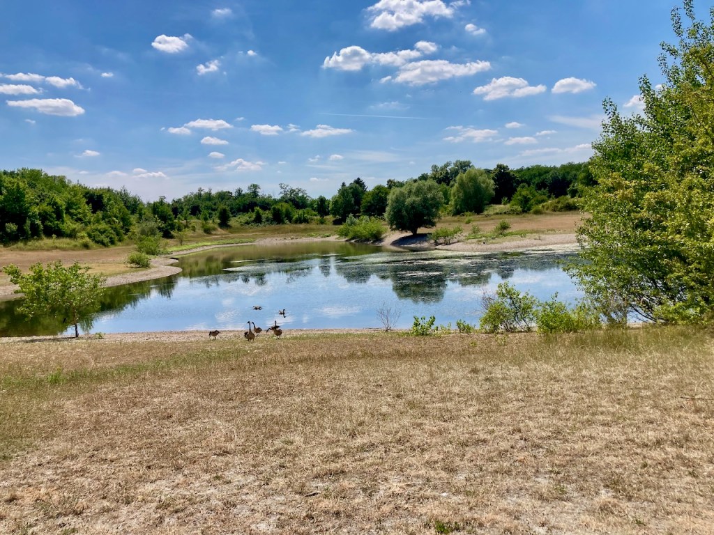 Die Westhovener Aue gehörte einst zum Kölner Verteidigungsring und war später Kasernengelände. Heute ist sie Teil des Äußeren Grüngürtels, steht unter Naturschutz und dient als Retentionsfläche bei Hochwasser. Nach der Hitzewelle sieht man ihr das allerdings nicht an.