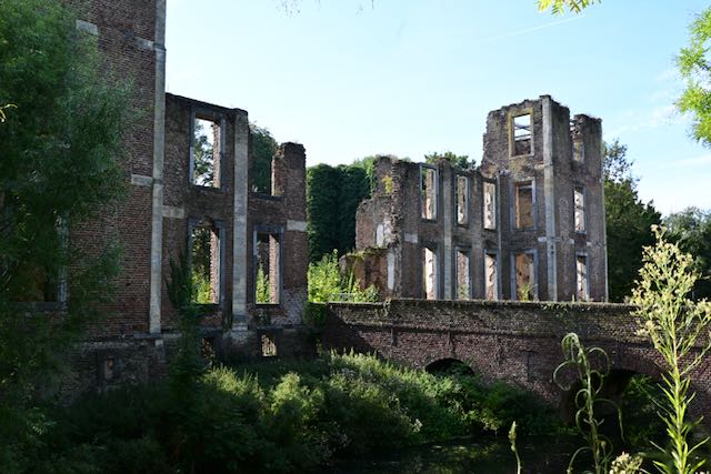 Plan B entstand am Abend vorher. In Richtung Maas fahren, dort den Maas-Radweg finden, von dem ich weiß, dass es ihn gibt, und an der Maas lang nach Roermund. Der Auszug aus Sittard ist ähnlich wie am Vortag: Immer an der Straße lang. In Born sehe ich aus dem Augenwinkel eine Ruine, ich drehe um um sie mir genauer anzusehen. Und das lohnt sich. Es ist ruhig und die Ruine sehenswert, auch ohne den Zoo zu besuchen.