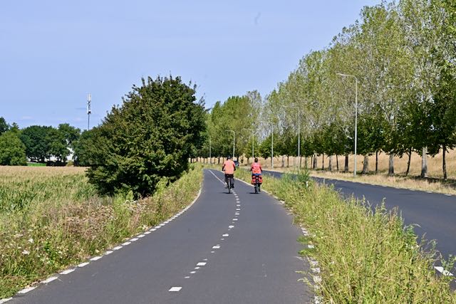Ich finde, ich sollte mal ein Foto von einem Radweg machen, der im Gegensatz zu unseren Hubbelpisten tatsächlich befahrbar ist. In diesem Fall ist er sogar breiter als die Autofahrbahn.