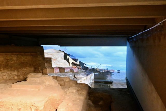 Die Ausstellung war wirklich gut und ziemlich leer. Die Ausgrabung zeigt Grundmauern der Römischen Siedlung Lutetia, der Hafenanlagen und die unvermeidliche Therme. Die Hafenanlagen waren mit einem Video ergänzt, wie es ausgesehen haben könnte. Es gibt einen Audioguide für das Fon und ich konnte mir eine Führung anhören.