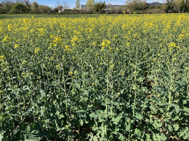 Auf dem Rückweg dann ein gelber Schimmer auf dem Feld. Hier blüht der Raps. Allerdings recht schütter und mit großen Lücken.